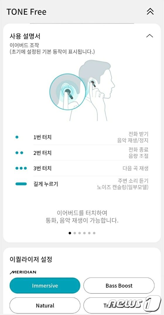 톤 프리 앱에서는 △터치패드 설정 △터치패드 잠금 △알림설정 △이어버드 찾기 등의 편의 기능이 지원된다.