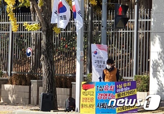 | 28일 정부과천청사 앞에는 전국언론노조 엠비엔지부 노조원이 '불법행위 책임지고 경영진은 물러나라'는 피켓을 들고 1인 시위를 진행하고 있다. 2020.10.28./뉴스1 © News1 김정현 기자 | ◇MBN이 법적대응 나서면 '6개월 정지' 어떻게 되나?