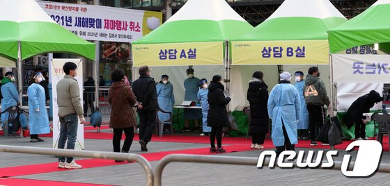 | 지난 21일 오후 경기 부천시 심곡본동 부천마루광장에 설치된 임시선별검사소에서 시민들이 코로나19 검체 검사를 받고 있다. .202.12.21/뉴스1 © News1 정진욱 기자 | 이처럼 확진자와 사망자가 증가한 이유로는 음성 환자의 전원 및 코로나19 치료병상 배정이 제때 이뤄지지 않은 탓이 크다는 분석이다.
