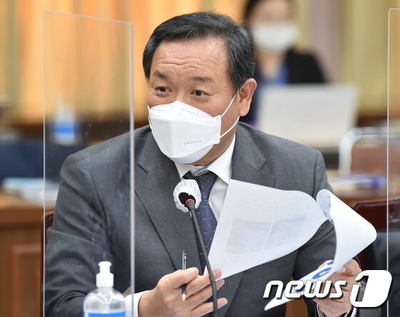 | 이형석 더불어민주당 의원이 19일 경기도 수원시 팔달구 경기도청에서 열린 국회 행정안전위원회의 경기도에 대한 국정감사에서 질의하고 있다. 2020.10.19/뉴스1 © News1 사진공동취재단 |
