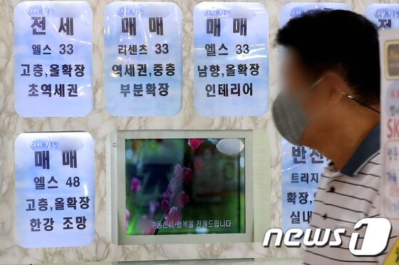 서울 아파트단지 밀집지역에 위치한 부동산 모습.© News1 이동해 기자 | 집값 급등이 통계로 거듭 확인되면서 현 정부의 부담도 커지게 됐다. 앞서 지난달 다른 민간 조사 기관인 부동산114 통계에서도 서울 아파트 평균 매매가는 10억509만원으로 먼저 10억원을 돌파한 바 있다.
