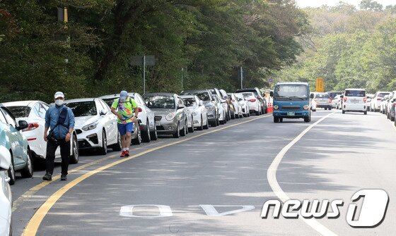 제주 산간도로 불법주차 행렬…추캉스족에 한라산 '바글바글' |