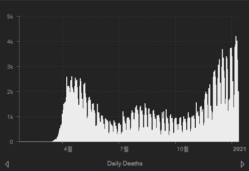 미국 코로나19 일일 사망자 집계 추이 - 존스홉킨스대학 통계