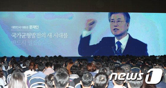 | 대전 유성구 대전컨벤션센터에서 열린 2018 대한민국 균형발전박람회에서 문재인 대통령 영상메시지/뉴스1 © News1 주기철 기자 |
